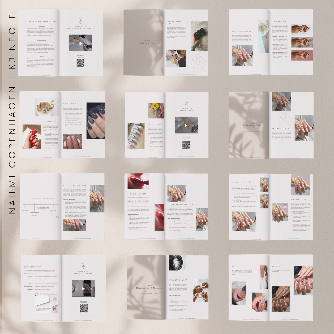 Du får både praktisk viden, visuelle eksempler og konkrete metoder, der gør det let at forstå, hvad der skaber et professionelt neglebillede.